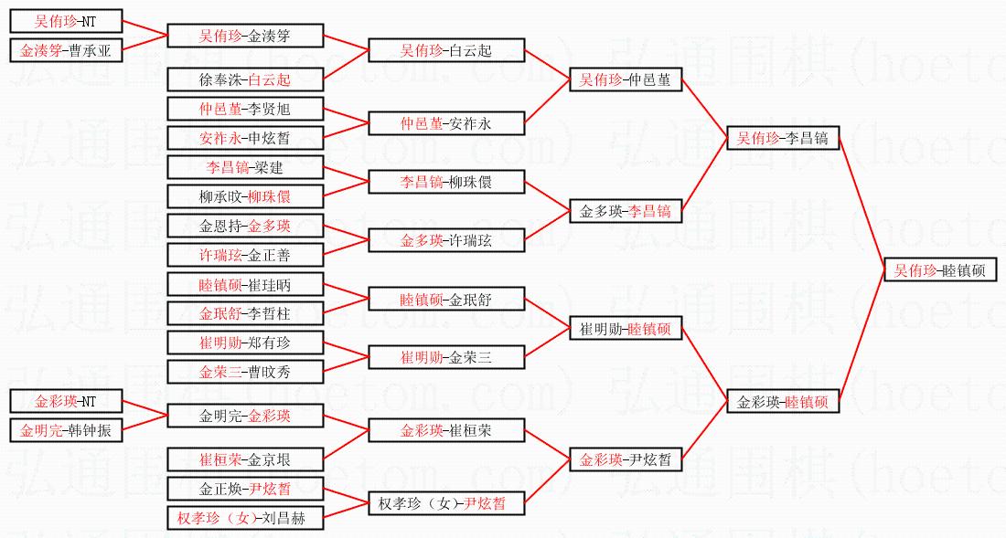 | 2.上半区半决赛吴侑珍获胜, 比分:吴侑珍 1:0 李昌镐。棋局: | ||