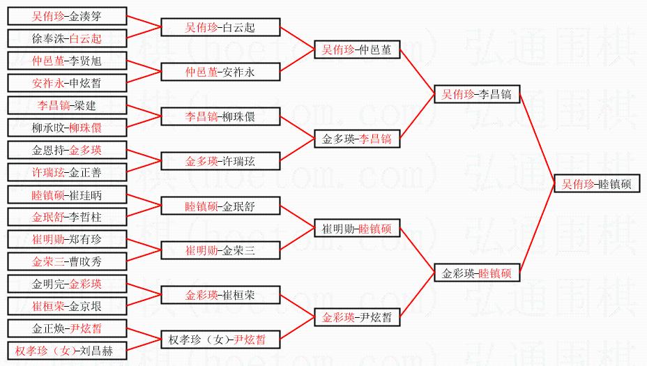 | 2.上半区半决赛吴侑珍获胜, 比分:吴侑珍 1:0 李昌镐。棋局: | ||
