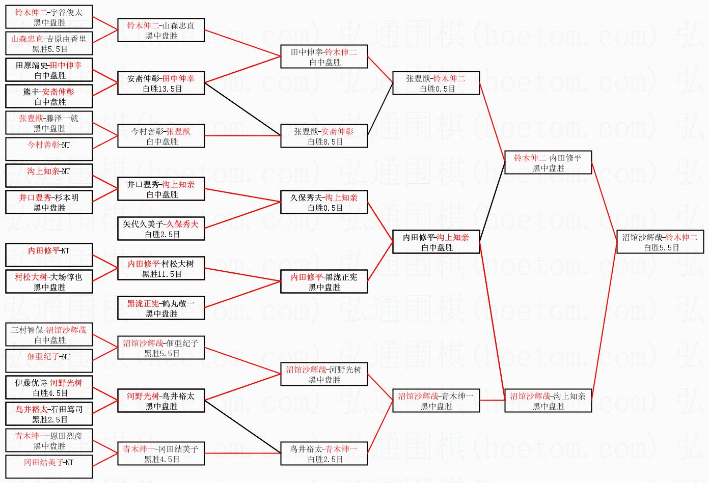 | 1.铃木伸二获得冠军,沼馆沙辉哉获得亚军。决赛比分:铃木伸二1:0沼馆沙辉哉。棋局: | ||