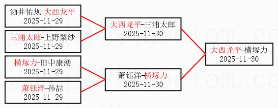 1.大西龙平获得冠军,横塚力获得亚军。决赛比分:大西龙平1:0横塚力。棋局: