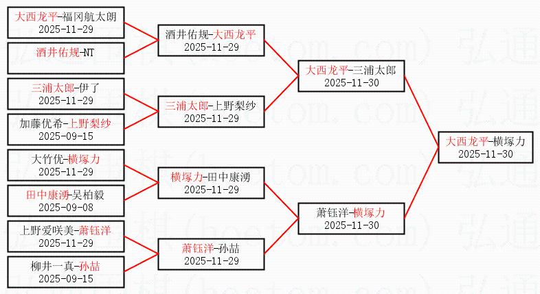 1.大西龙平获得冠军,横塚力获得亚军。决赛比分:大西龙平1:0横塚力。棋局: