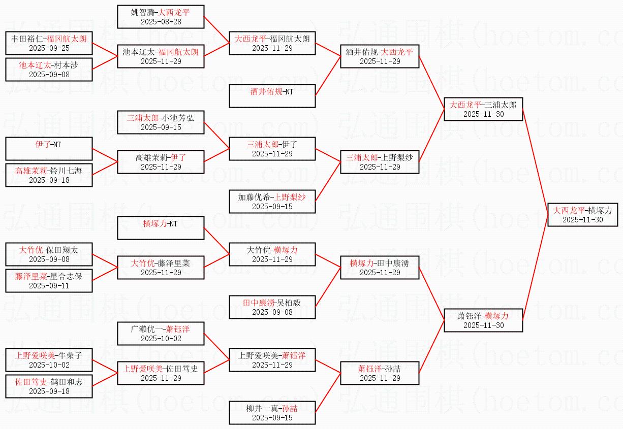 1.大西龙平获得冠军,横塚力获得亚军。决赛比分:大西龙平1:0横塚力。棋局: