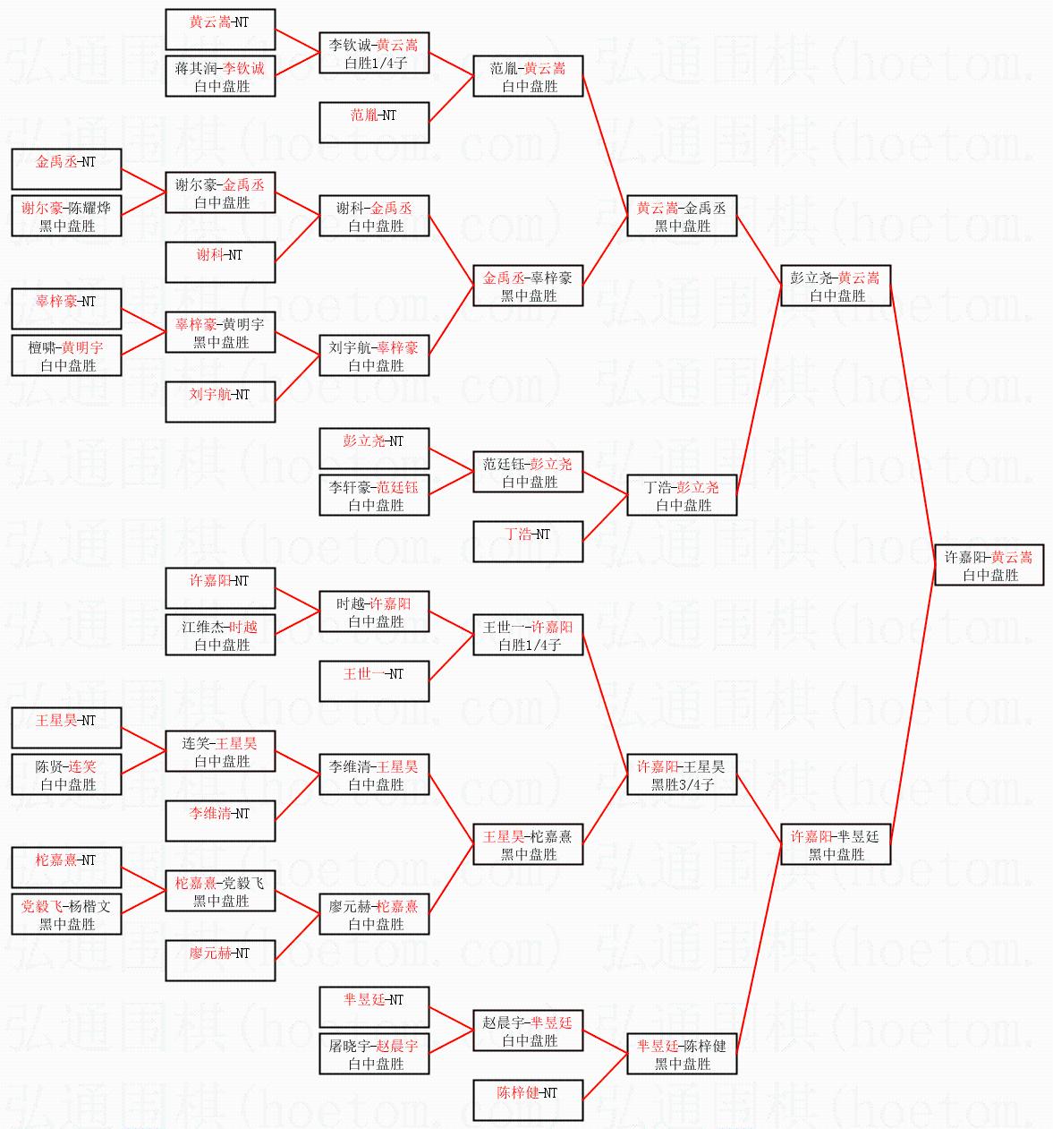 1.黄云嵩获得冠军,许嘉阳获得亚军。决赛比分:黄云嵩1:0许嘉阳。棋局: