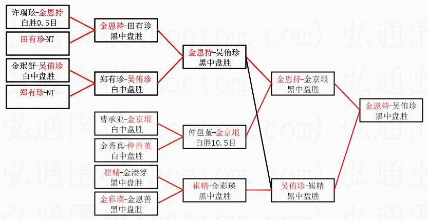 | 1.金恩持获得冠军,吴侑珍获得亚军。决赛比分:金恩持2:1吴侑珍。棋局: | ||
