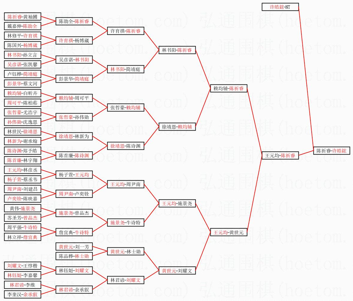 1.许皓鋐获得冠军,陈祈睿获得亚军。决赛比分:许皓鋐3:0陈祈睿。棋局: