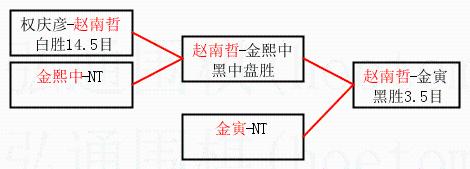 2.上半区半决赛赵南哲获胜, 比分:赵南哲 1:0 金熙中。棋局: