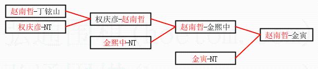 1.赵南哲获得冠军,金寅获得亚军。决赛比分:赵南哲3:0金寅。棋局: