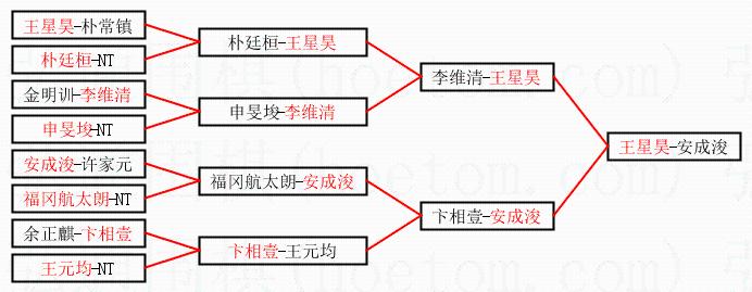 1.王星昊获得冠军,安成浚获得亚军。决赛比分:王星昊1:0安成浚。棋局:
