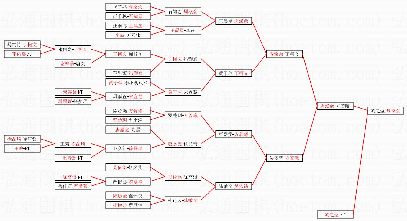 1.周泓余获得冠军,於之莹获得亚军。决赛比分:周泓余2:0於之莹。棋局:
