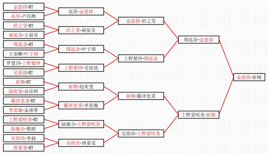 3.下半区半决赛崔精获胜,比分:崔精1:0上野爱咲美。棋局: