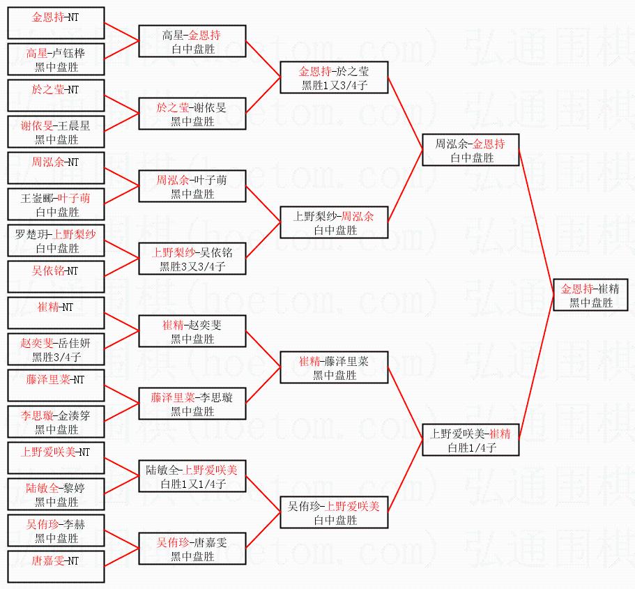 | 3.下半区半决赛崔精获胜,比分:崔精1:0上野爱咲美。棋局: | ||