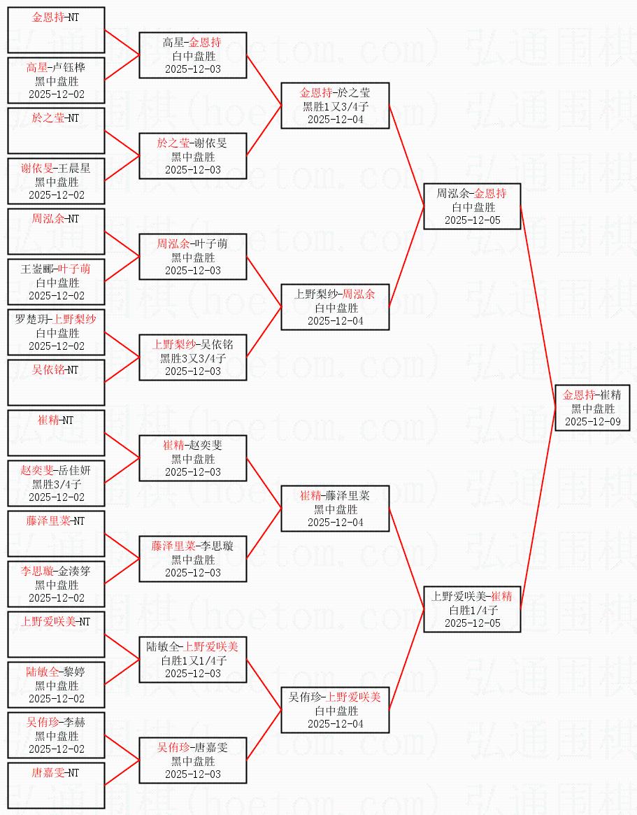 3.下半区半决赛崔精获胜,比分:崔精1:0上野爱咲美。棋局: