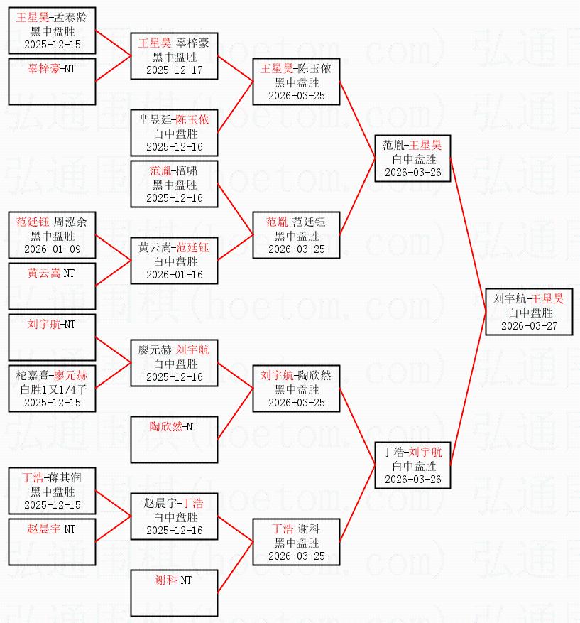 2.上半区半决赛王星昊获胜, 比分:王星昊 1:0 范胤。棋局: