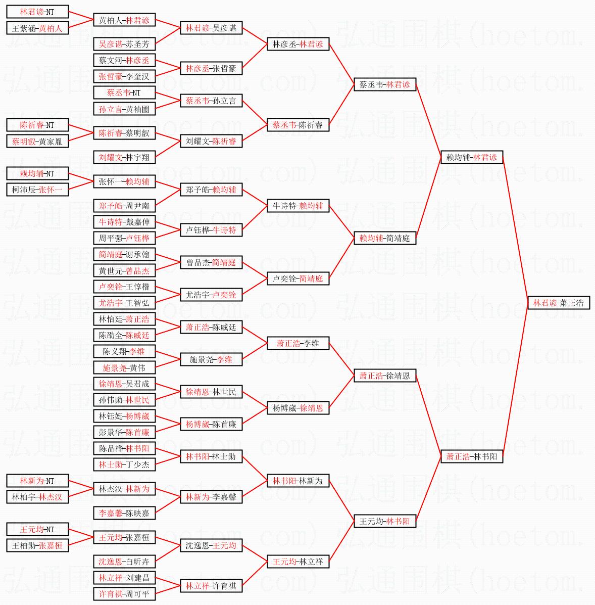 1.林君谚获得冠军,萧正浩获得亚军。决赛比分:林君谚2:1萧正浩。棋局: