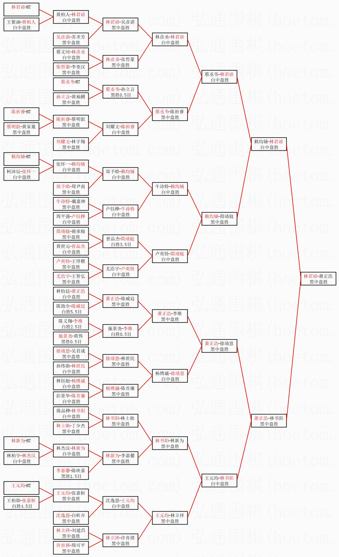 1.林君谚获得冠军,萧正浩获得亚军。决赛比分:林君谚2:1萧正浩。棋局: