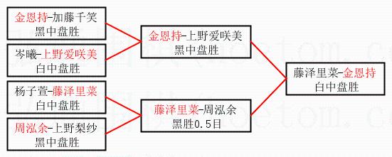 | 3.下半区半决赛藤泽里菜获胜,比分:藤泽里菜1:0周泓余。棋局: | ||
