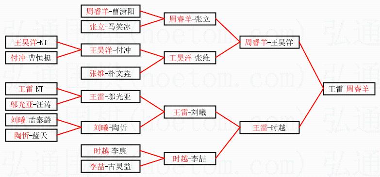 1.周睿羊获得冠军,王雷获得亚军。决赛比分:周睿羊2:0王雷。棋局: