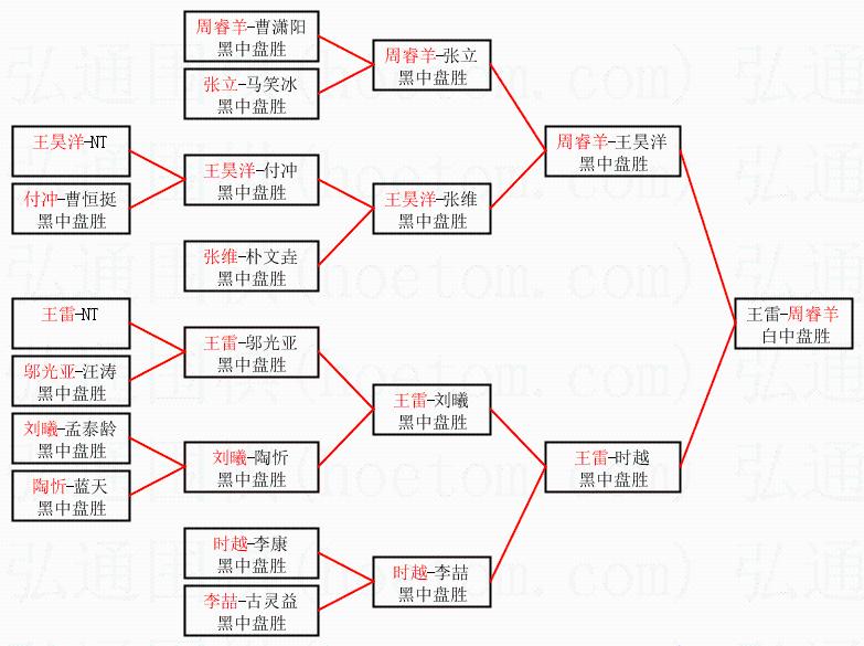 1.周睿羊获得冠军,王雷获得亚军。决赛比分:周睿羊2:0王雷。棋局: