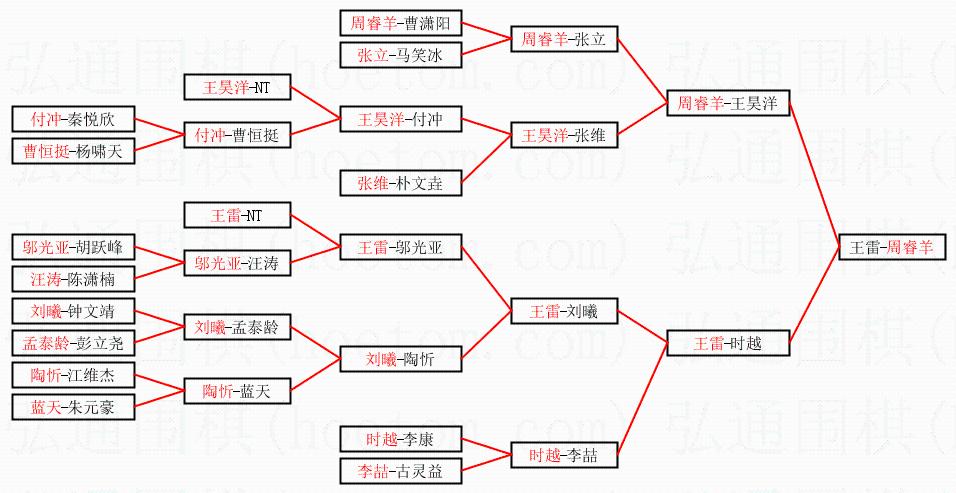 1.周睿羊获得冠军,王雷获得亚军。决赛比分:周睿羊2:0王雷。棋局: