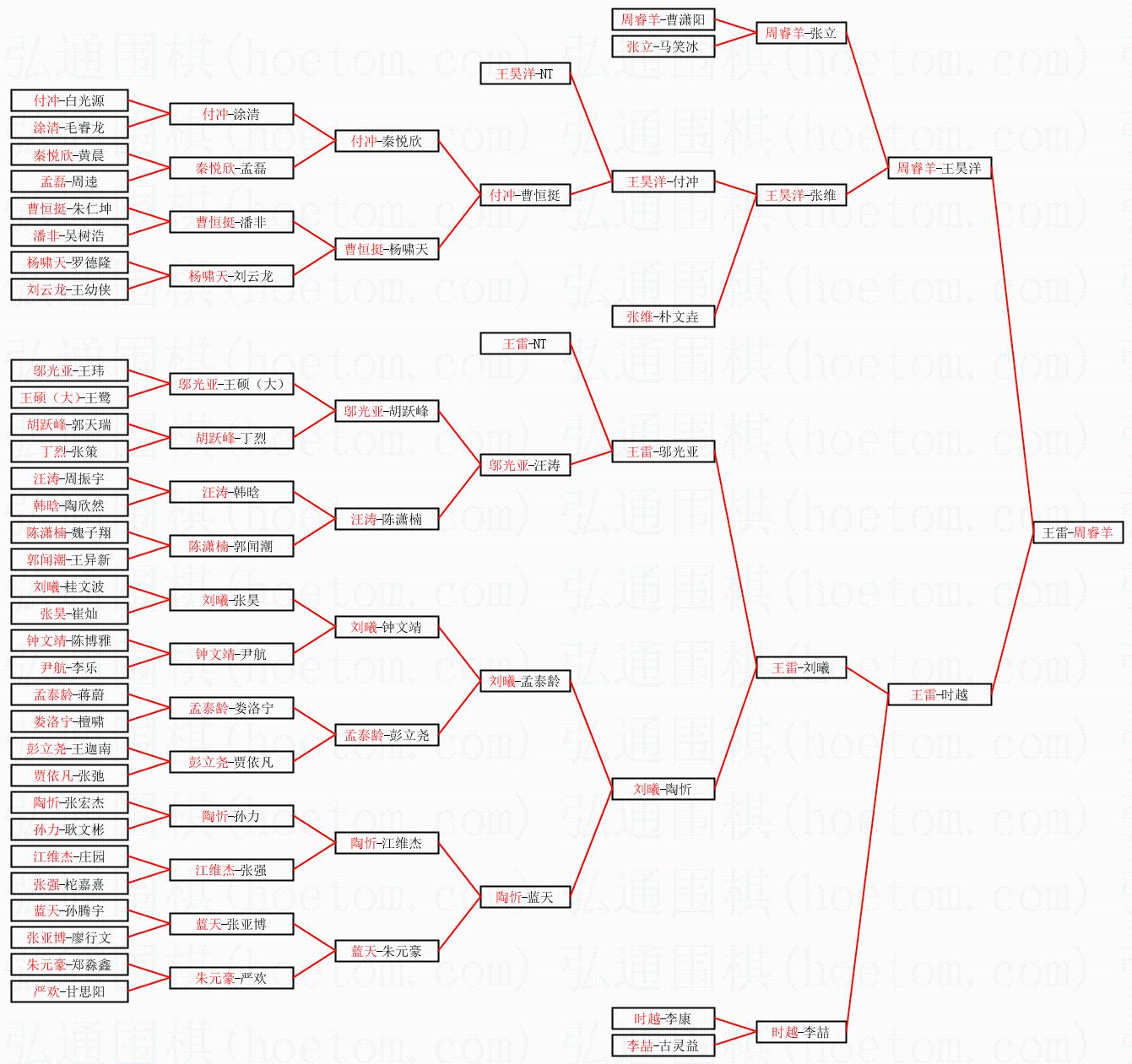 1.周睿羊获得冠军,王雷获得亚军。决赛比分:周睿羊2:0王雷。棋局: