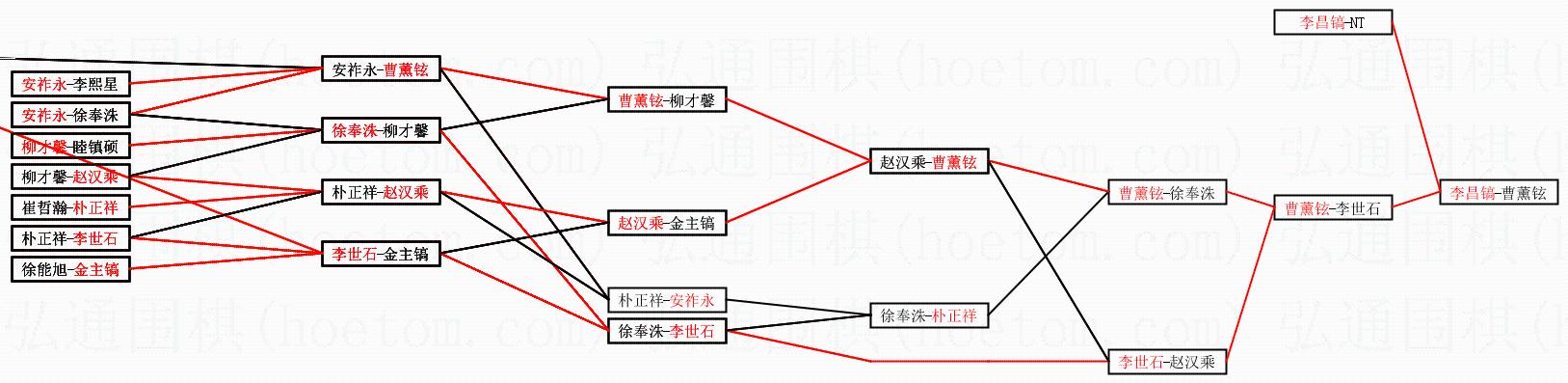 | 1.李昌镐获得冠军,曹薰铉获得亚军。决赛比分:李昌镐3:1曹薰铉。棋局: | ||