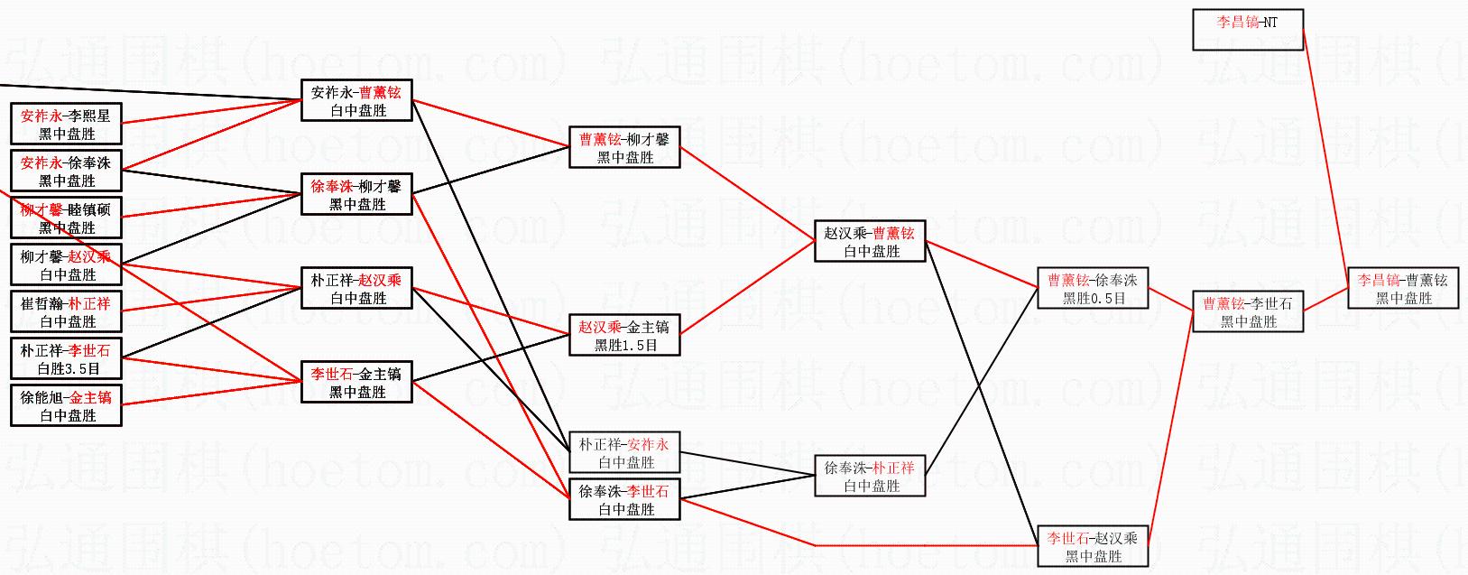 3.下半区半决赛曹薰铉获胜,比分:曹薰铉1:0李世石。棋局: