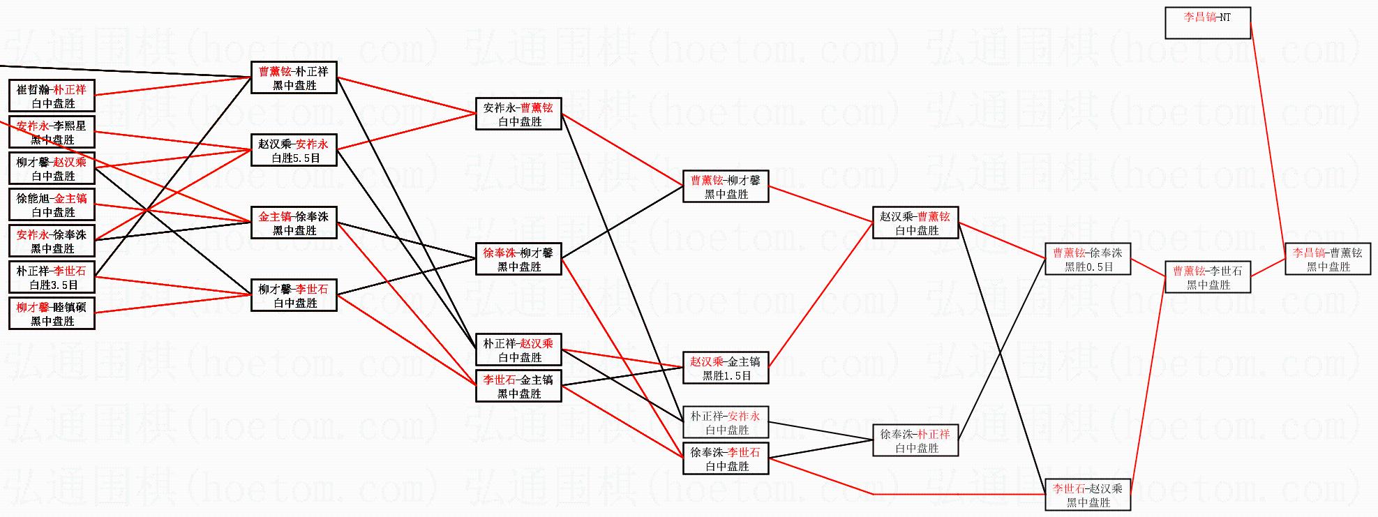 | 3.下半区半决赛曹薰铉获胜,比分:曹薰铉1:0李世石。棋局: | ||
