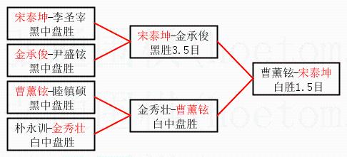 | 1.宋泰坤获得冠军,曹薰铉获得亚军。决赛比分:宋泰坤3:2曹薰铉。棋局: | ||