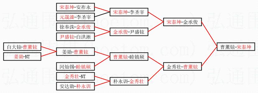 | 1.宋泰坤获得冠军,曹薰铉获得亚军。决赛比分:宋泰坤3:2曹薰铉。棋局: | ||