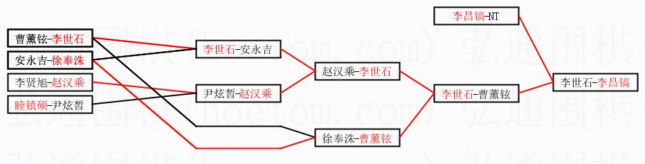 | 3.下半区半决赛李世石获胜,比分:李世石1:0曹薰铉。棋局: | ||