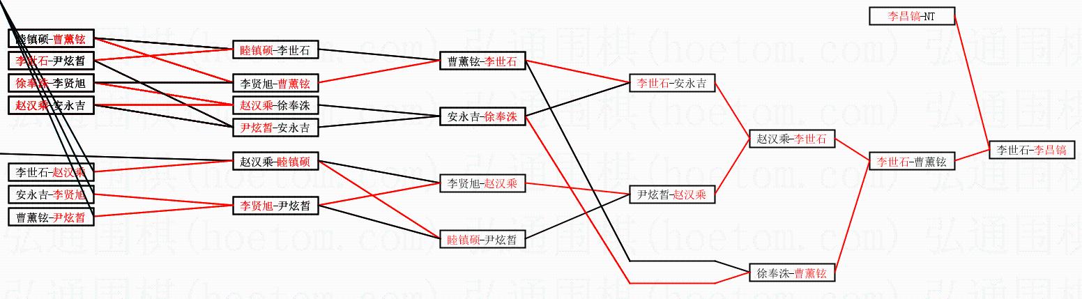 3.下半区半决赛李世石获胜,比分:李世石1:0曹薰铉。棋局: