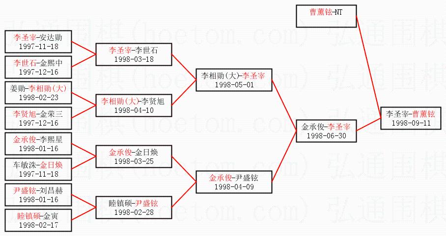 1.曹薰铉获得冠军,李圣宰获得亚军。决赛比分:曹薰铉3:2李圣宰。棋局: