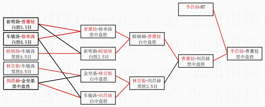 | 3.下半区半决赛曹薰铉获胜,比分:曹薰铉1:0刘昌赫。棋局: | ||