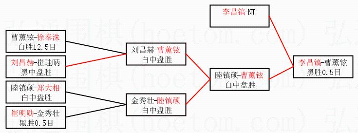 | 1.李昌镐获得冠军,曹薰铉获得亚军。决赛比分:李昌镐4:0曹薰铉。棋局: | ||
