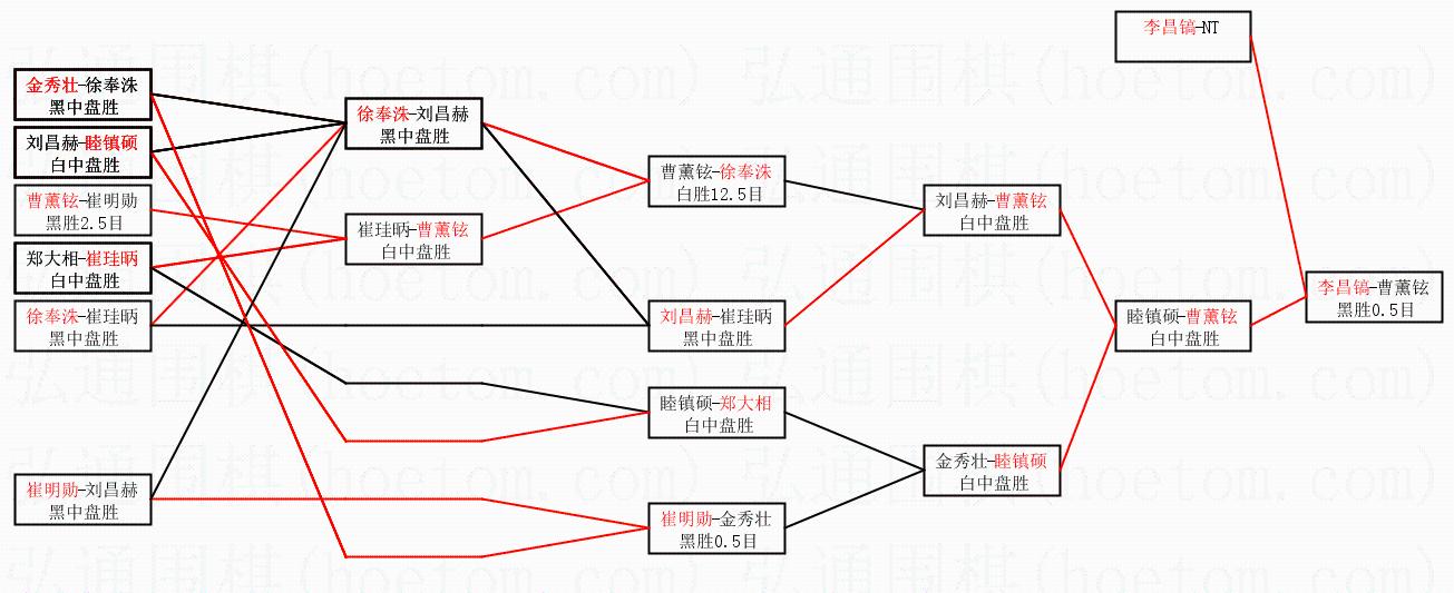 | 1.李昌镐获得冠军,曹薰铉获得亚军。决赛比分:李昌镐4:0曹薰铉。棋局: | ||