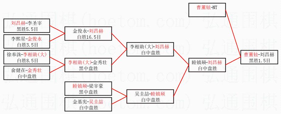 | 1.曹薰铉获得冠军,刘昌赫获得亚军。决赛比分:曹薰铉3:1刘昌赫。棋局: | ||