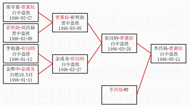 1.曹薰铉获得冠军,李昌镐获得亚军。决赛比分:曹薰铉3:0李昌镐。棋局: