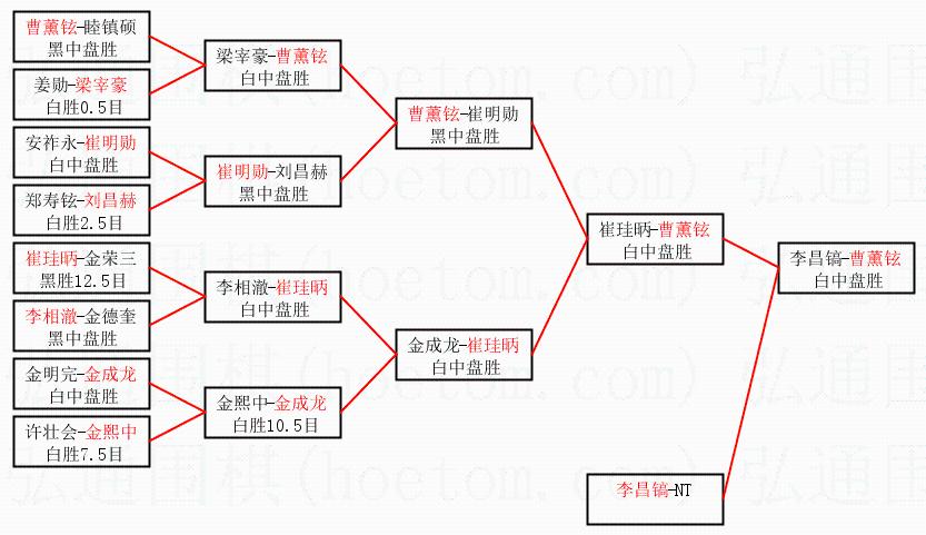 | 1.曹薰铉获得冠军,李昌镐获得亚军。决赛比分:曹薰铉3:0李昌镐。棋局: | ||