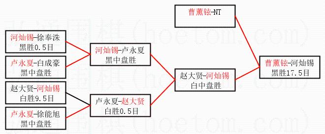 1.曹薰铉获得冠军,河灿锡获得亚军。决赛比分:曹薰铉3:1河灿锡。棋局: