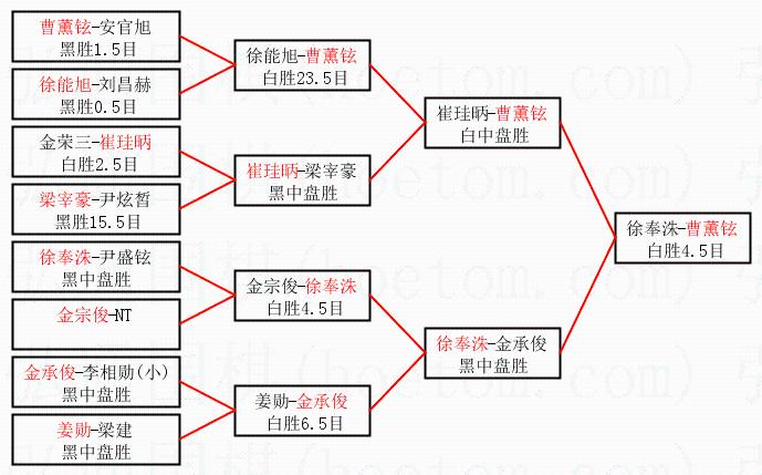 1.曹薰铉获得冠军,徐奉洙获得亚军。决赛比分:曹薰铉3:0徐奉洙。棋局: