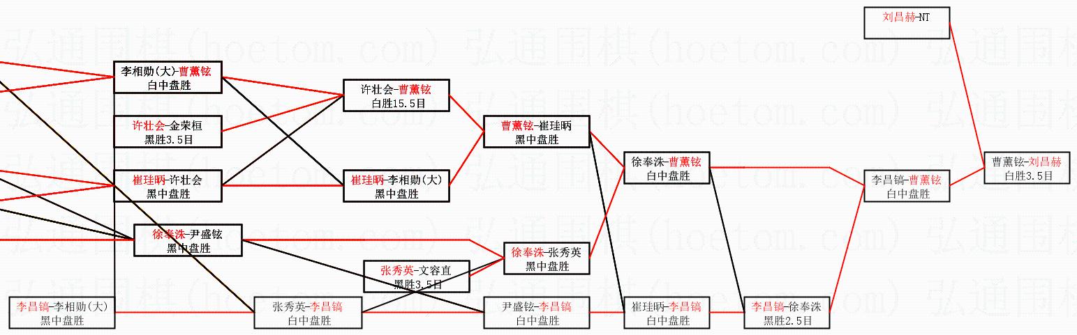 | 3.下半区半决赛曹薰铉获胜,比分:曹薰铉1:0李昌镐。棋局: | ||