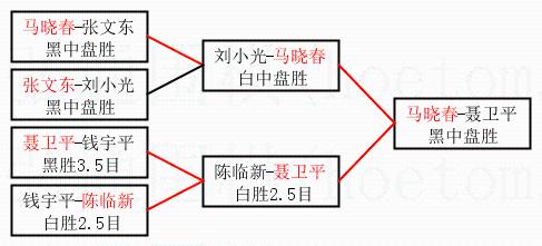 2.上半区半决赛马晓春获胜, 比分:马晓春 1:0 刘小光。棋局:
