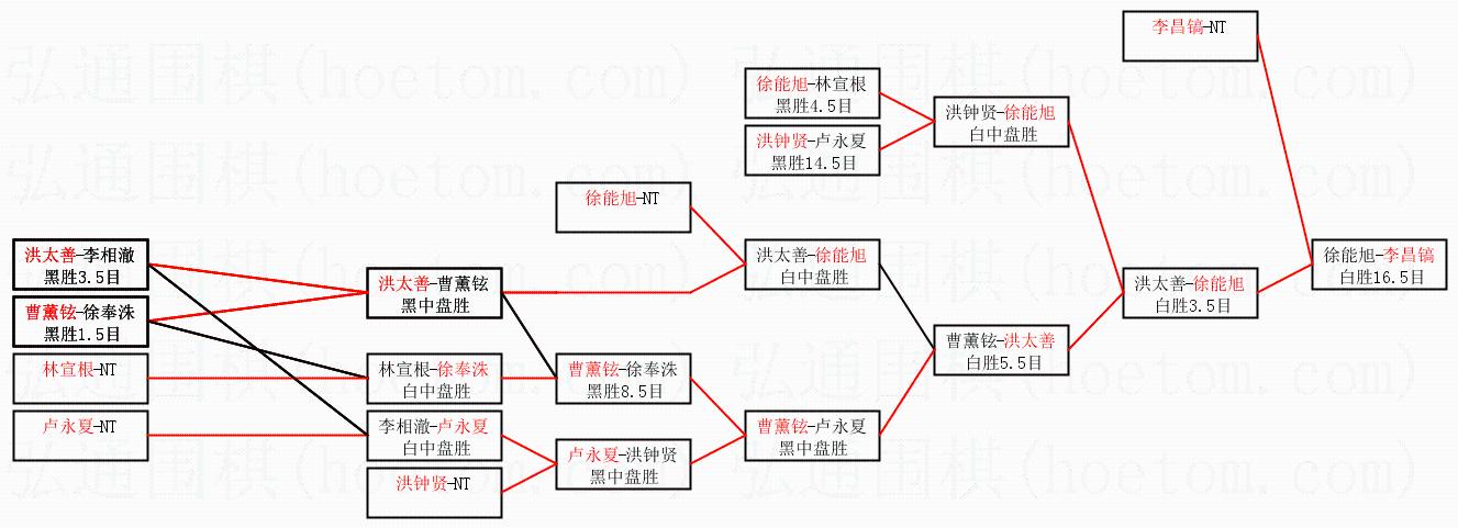 | 1.李昌镐获得冠军,徐能旭获得亚军。决赛比分:李昌镐3:1徐能旭。棋局: | ||