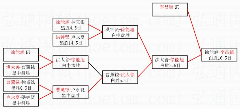 | 3.下半区半决赛徐能旭获胜,比分:徐能旭1:0洪太善。棋局: | ||