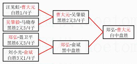 1.曹大元获得冠军,郑弘获得亚军。决赛比分:曹大元1:0郑弘。棋局: