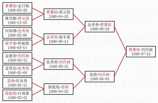 1.曹薰铉获得冠军,刘昌赫获得亚军。决赛比分:曹薰铉3:0刘昌赫。棋局: