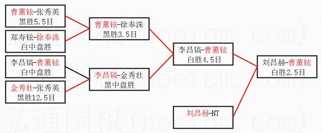 1.曹薰铉获得冠军,刘昌赫获得亚军。决赛比分:曹薰铉3:0刘昌赫。棋局: