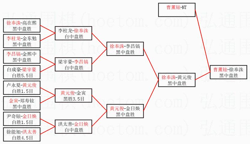 | 1.曹薰铉获得冠军,徐奉洙获得亚军。决赛比分:曹薰铉3:0徐奉洙。棋局: | ||