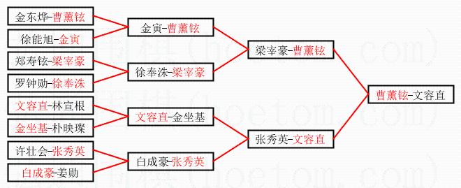 | 1.曹薰铉获得冠军,文容直获得亚军。决赛比分:曹薰铉3:0文容直。棋局: | ||