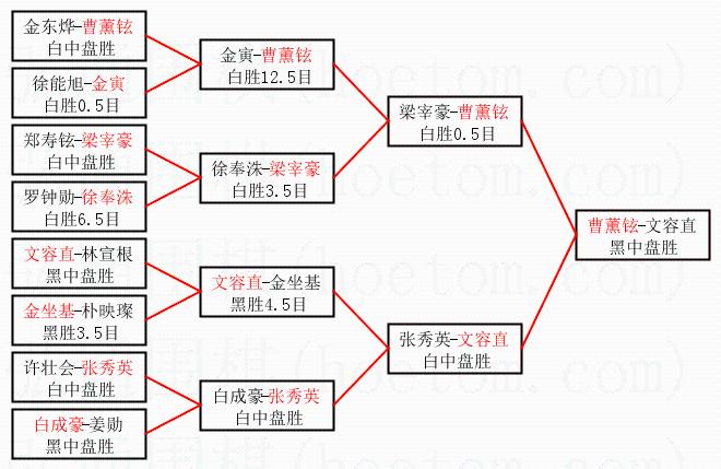 | 1.曹薰铉获得冠军,文容直获得亚军。决赛比分:曹薰铉3:0文容直。棋局: | ||